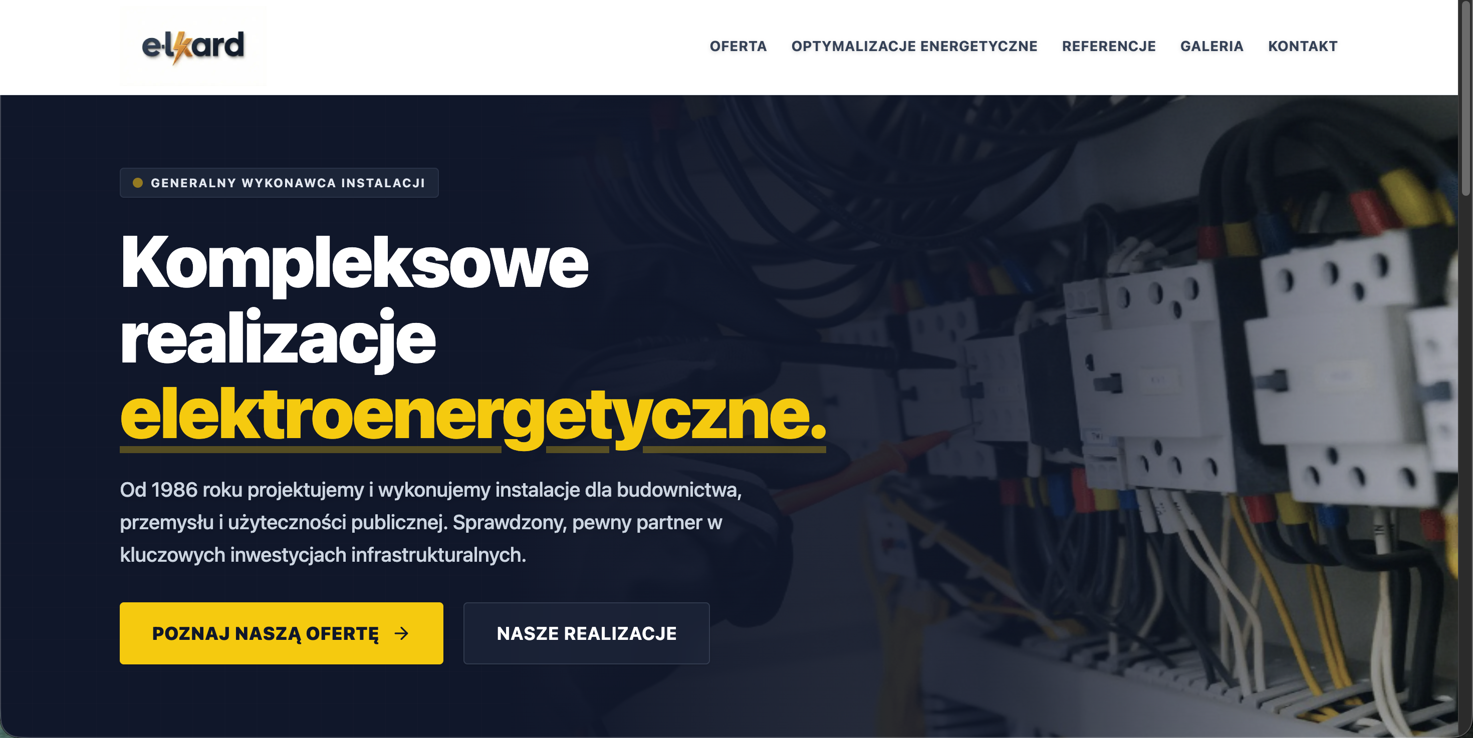 Kompleksowa realizacja nowoczesnej strony firmowej. Oprócz kodowania i wdrożenia interfejsu, dla tego klienta zaprojektowałem również w 100% autorski logotyp.